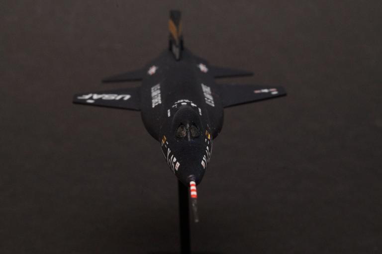 Die Qualität ist wirklich anno Tobak, aber man kann das typische Erscheinungsbild dieses Experimental Flugzeuges erkennen. Nachdem ich diesen kleinen Vogel rohbaufertig hatte bekam er eine schwarze Grundlackierung. Drüber kam eine Schicht glänzendes transparentes Blau. Jetzt stand ich vor der Herausforderung ob die 30 jahren alten Decals noch mitspielen.
